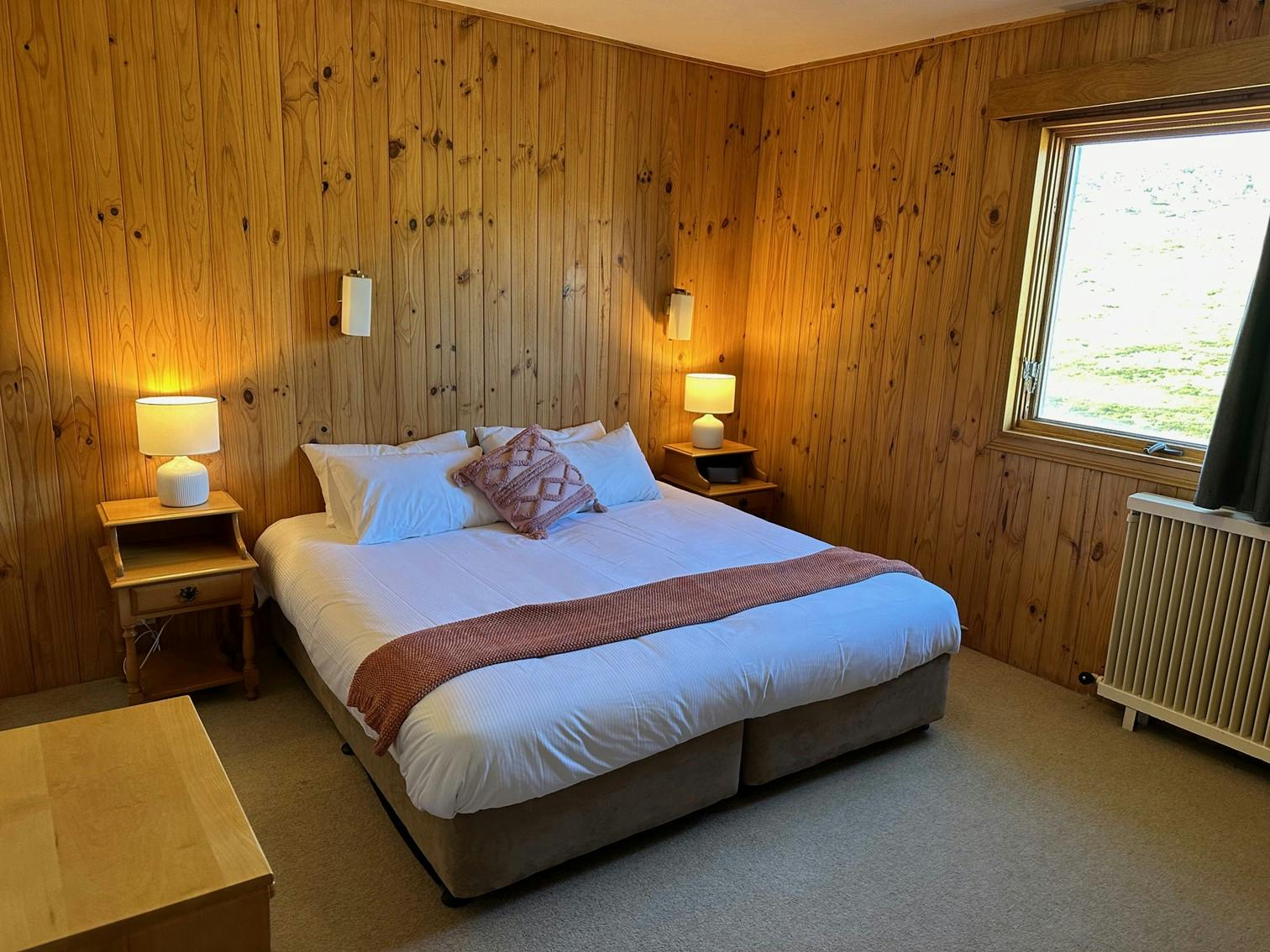 Enjoy the stunning views of the mountains from one of our most popular rooms. These rooms can accommodate up to 4 people and are equipped with a king bed (can be split into two king singles on request), king bunk bed and private ensuite. Rates include buffet breakfast, 3 course dinner, scheduled daily over snow transport and pick up/drop off at the Perisher Skitube Terminal.